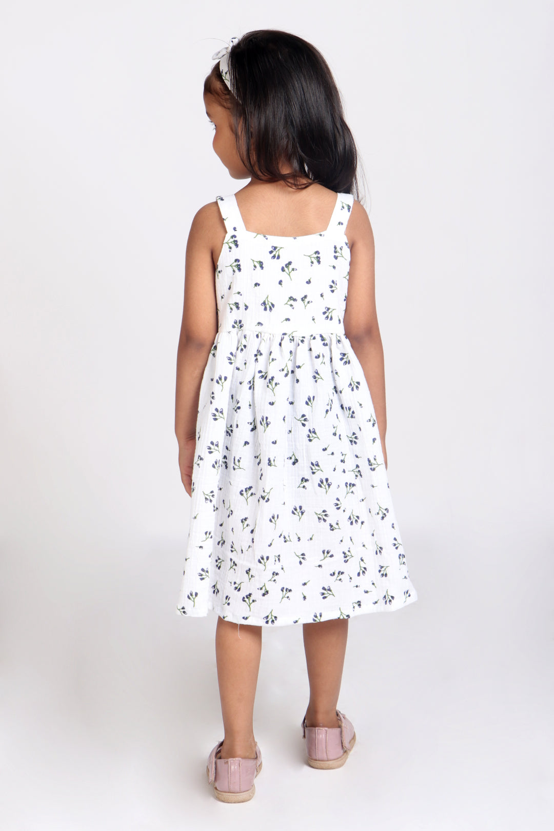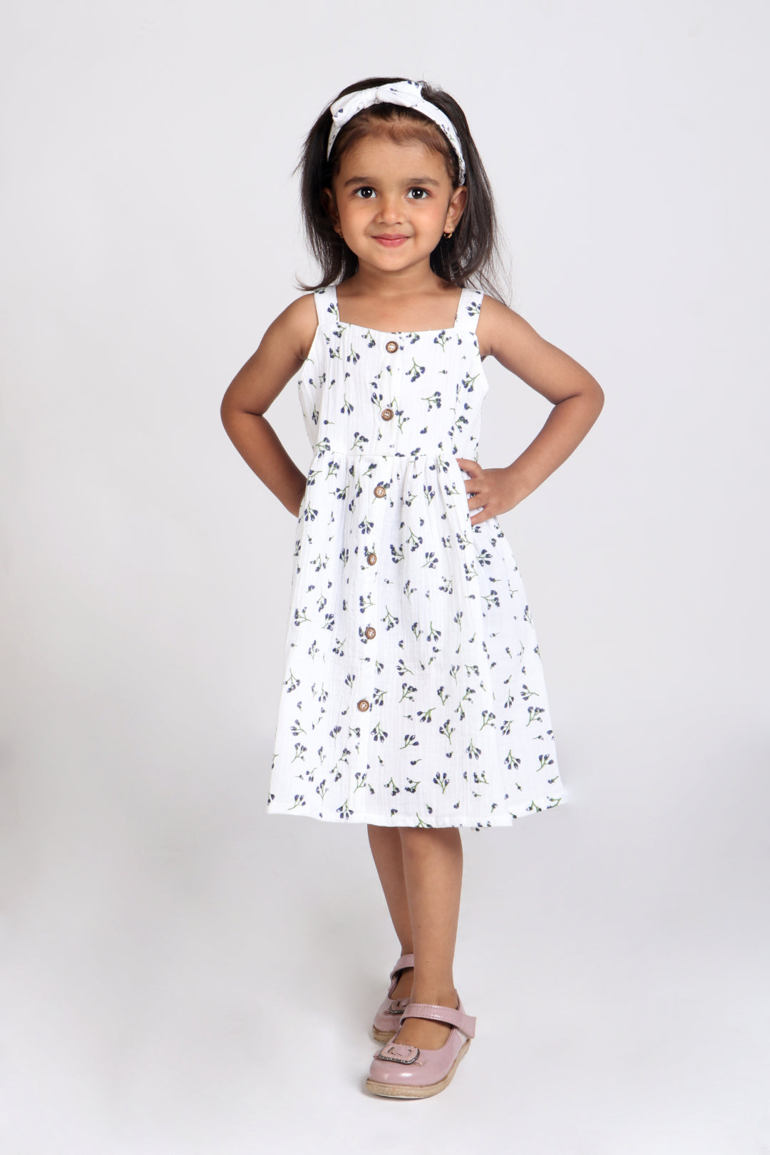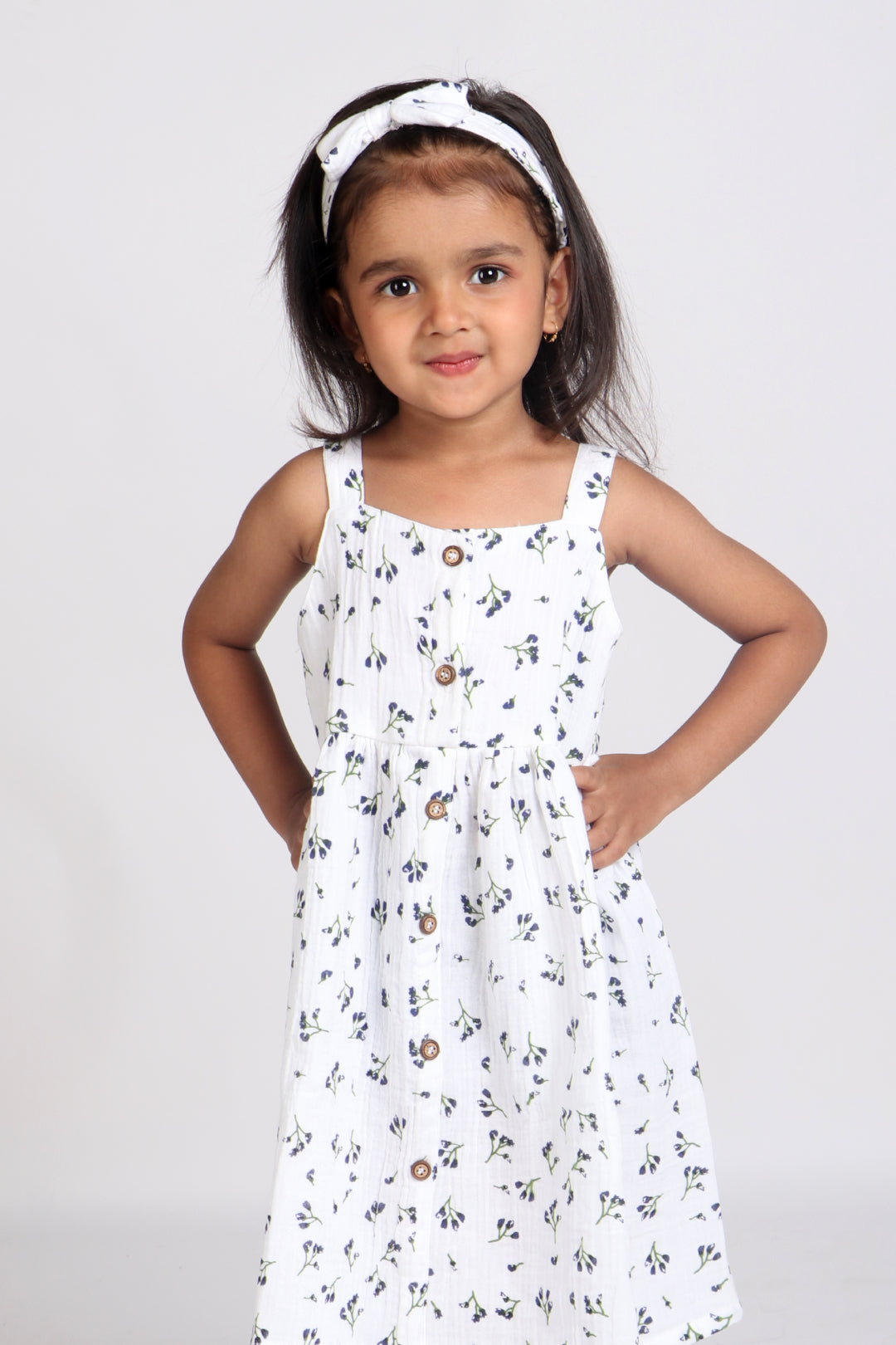 Our white sleeveless frock is made with 100% organic cotton, keeping your child cool, comfy, and carefree. Whether it's a sunny playdate or a day full of adventures, this lightweight and breathable dress is perfect for it all and it comes with a pretty hairband too!