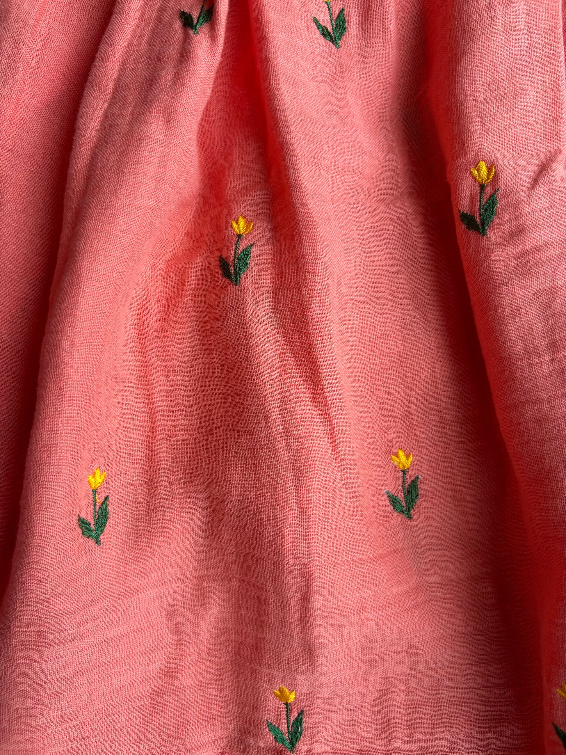 Prepare for the upcoming festivities with this gorgeous halter neck dress, created using organic cotton and azo free dyes. The intricate embroidery adds a touch of sophistication. Choose from two stunning colors - orange and yellow, and be ready to make a statement this festive season.