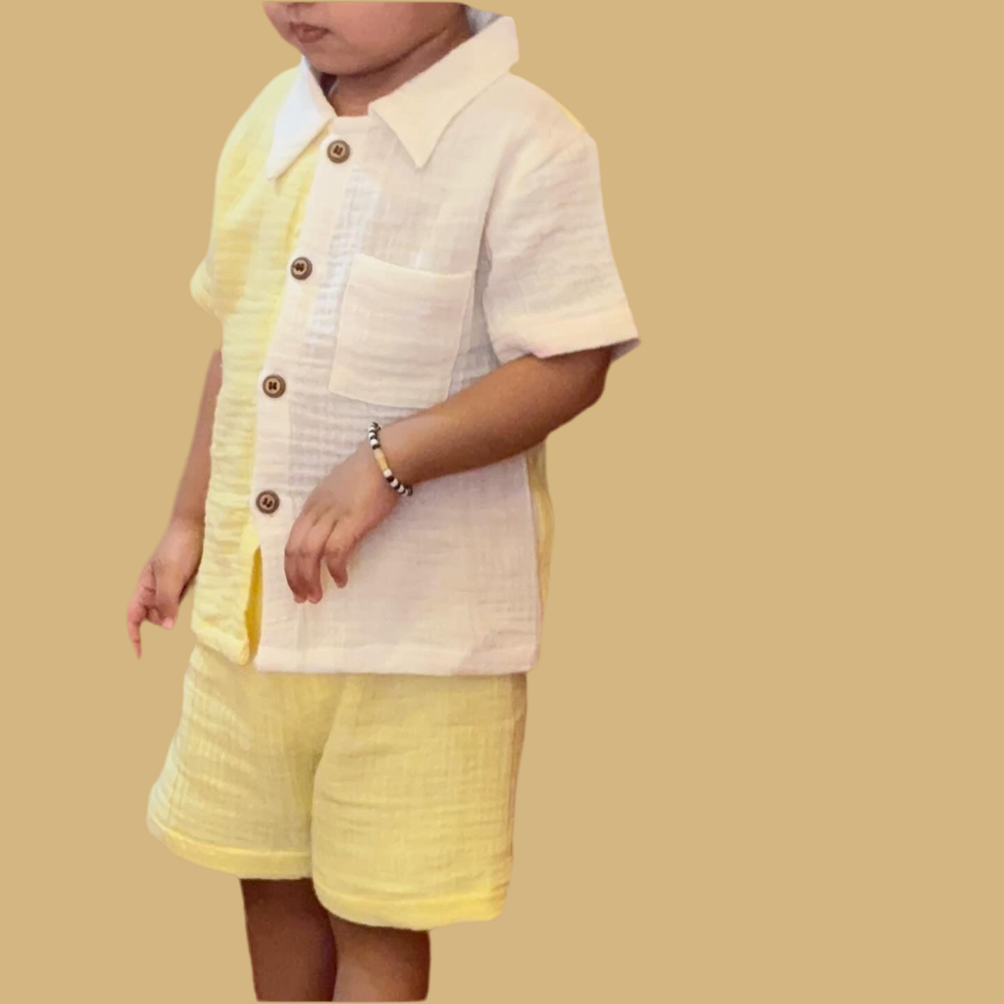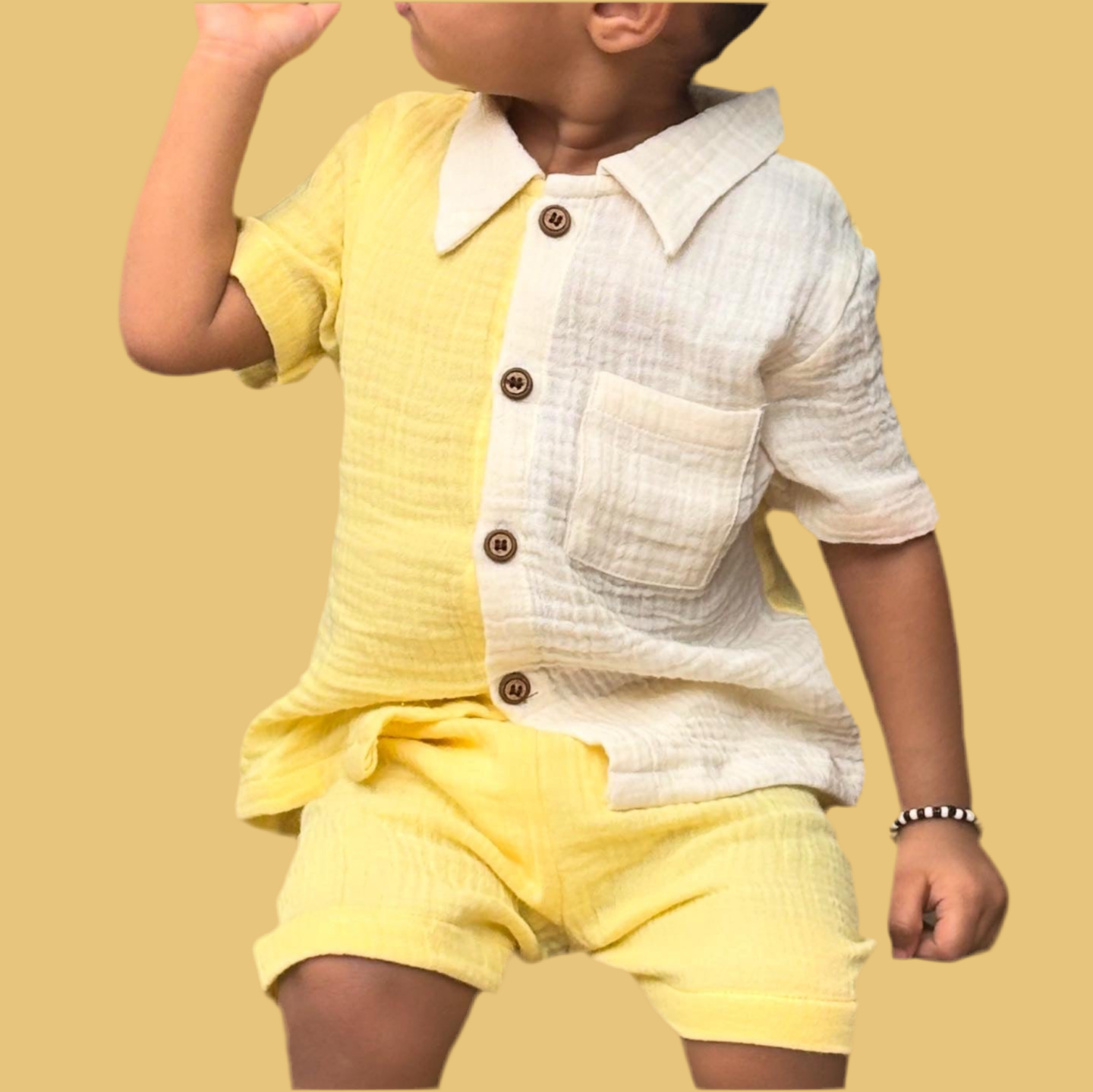 Designed for active little ones, the Half & Half Shirt Set is the perfect blend of trend and comfort. This lightweight, breathable, and summer-friendly outfit is ideal for playdates, casual outings, and everyday adventures. Featuring a stylish half-and-half color-blocked design, this set keeps your child looking effortlessly cool while ensuring unrestricted movement. Available in a vibrant Yellow shade, it’s a unisex must-have for every little explorer.
